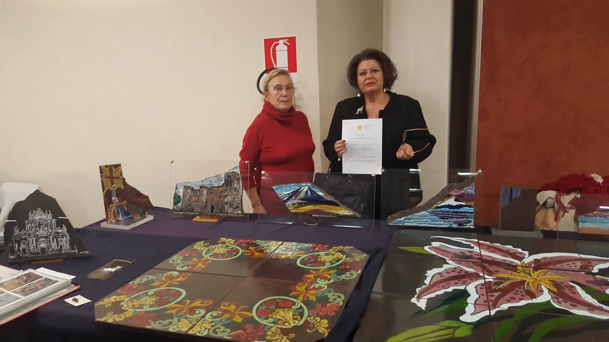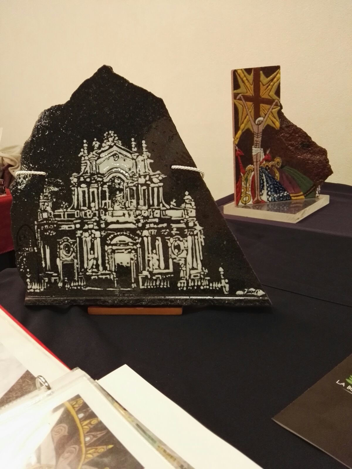 Fiorella Leani was invited by the president of the Sicilian Delegation, Giovanna Nicotra de Geronimo, to expose her lava artwork at the prestigious exibition of artwork from Sicily.
